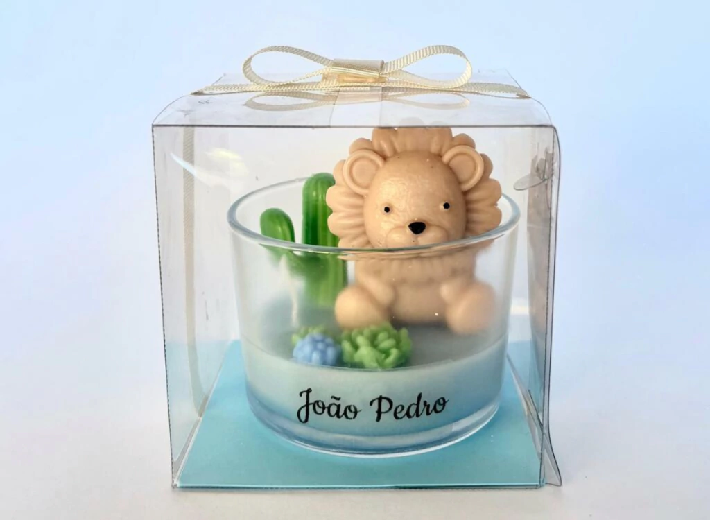 Apresentamos o Leaozinho de Vela Perfumada, uma linda opção para brindes em eventos como batizado e chá de bebê. Cada unidade é cuidadosamente embalada em uma caixinha de acetato, garantindo um toque especial e delicado.